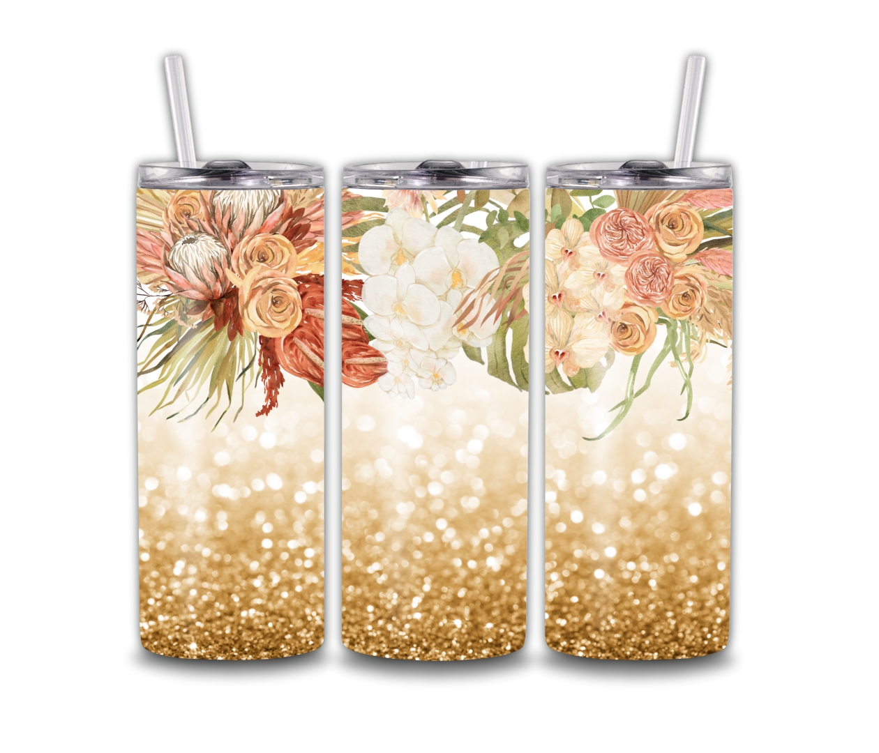 Gold Glitter Tropical Floral