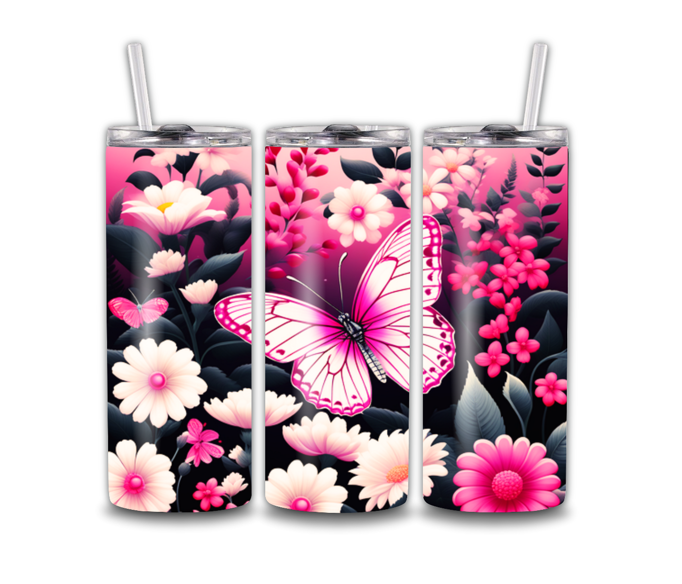 Vibrant Pink Butterflies with Floral Background